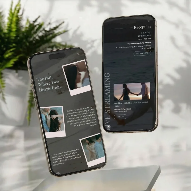 Animasi yang mengalir mengikuti scroll, musik pilihan, visual yang bercerita — semua dirancang agar tamu tidak sekadar membaca, tapi merasakan.
